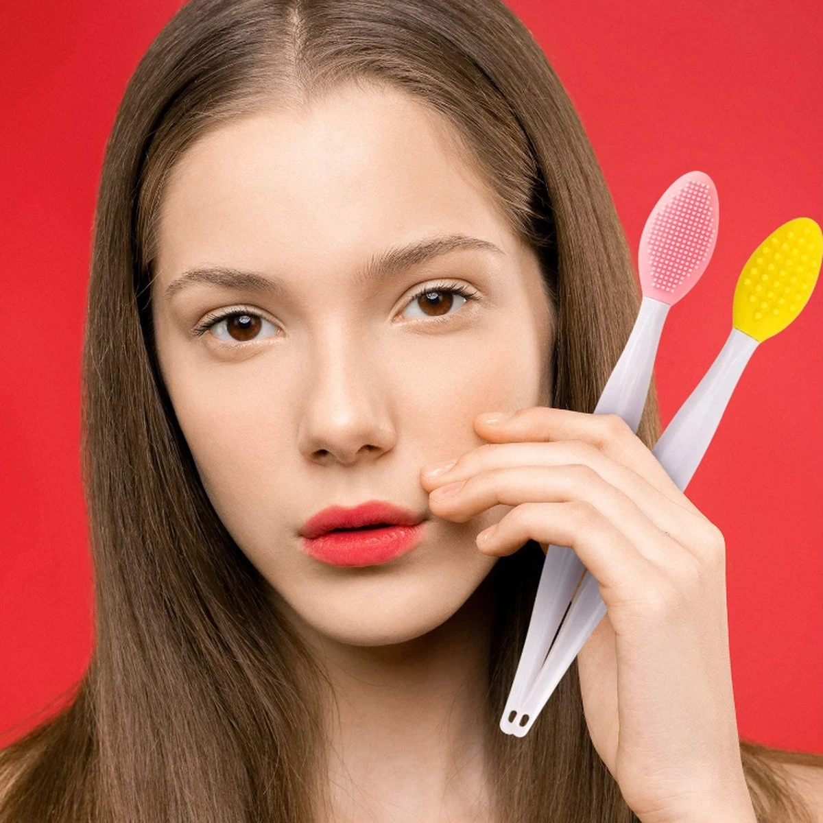 Pakket bevat 4 stuks siliconen exfoliërende lipborstels met 4 kleuren – roze, groen, geel, roze rood. Elk meet 14,7 cm lang.