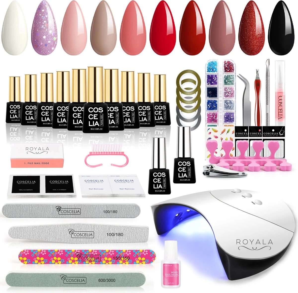 Deze set ontbreekt aan helemaal niets! Van nagelriem olie tot aan nagel reinigingsdoekjes en van teenspreiders tot aan nagelriem mesje. Met deze set geef je jezelf of je klanten een uitgebreide manicure gevolgd door een prachtige gellak behandeling.